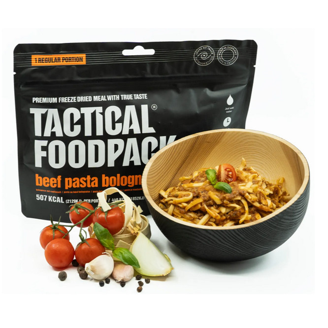 Tactical Foodpack “Beef Pasta Bolognese” mit Rindshackfleisch, 115g, gefriergetrocknet